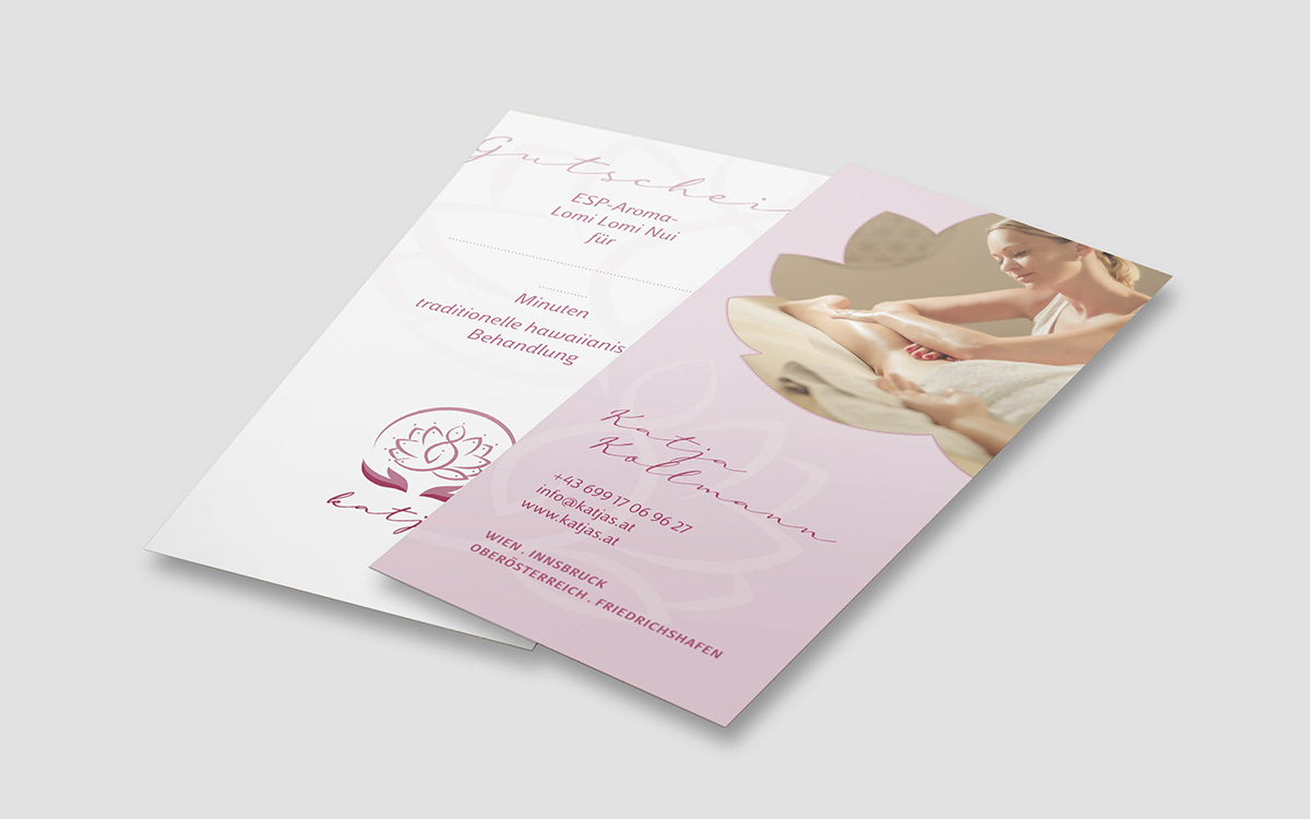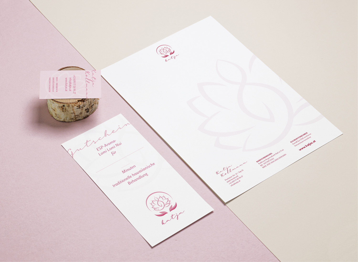 Für Katja durfte ich ein komplettes Corporate Design entwerfen. Das vorhandene Logo wurde farblich angepasst und optimiert, ein Farbkonzept entwickelt und die passenden Schriften ausgewählt. Umgesetzt wurden Visitenkarte, Briefbogen, Gutschein, diverse Flyer, der Auftritt für Social Media wie auch eine Webseite.
