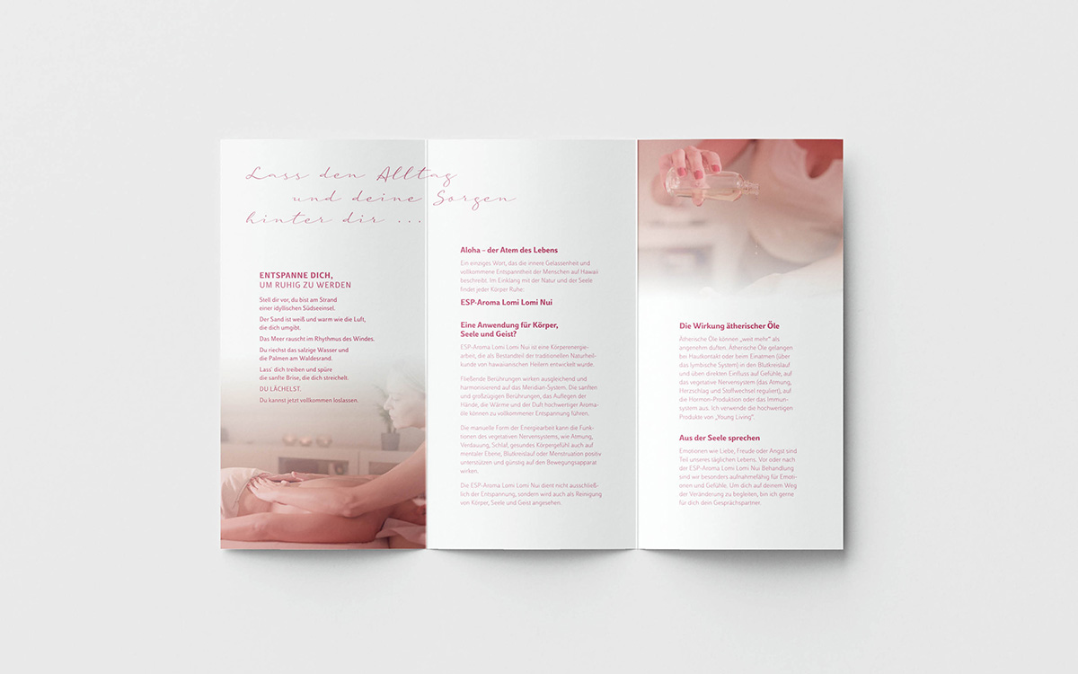 ESP-Aroma Lomi ist eine hawaiianische Körperenergiearbeit, die das Äußere des Körpers mit dem Inneren in Einklang bringt. Fließende Berührungen können ausgleichend und harmonisierend auf das Meridian-System wirken.